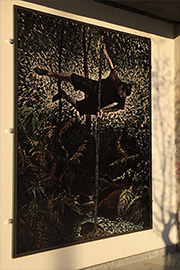 de 4 × 4 m y ocho murales móviles de 2 × 3 m cada uno, óleo sobre greenpanel.